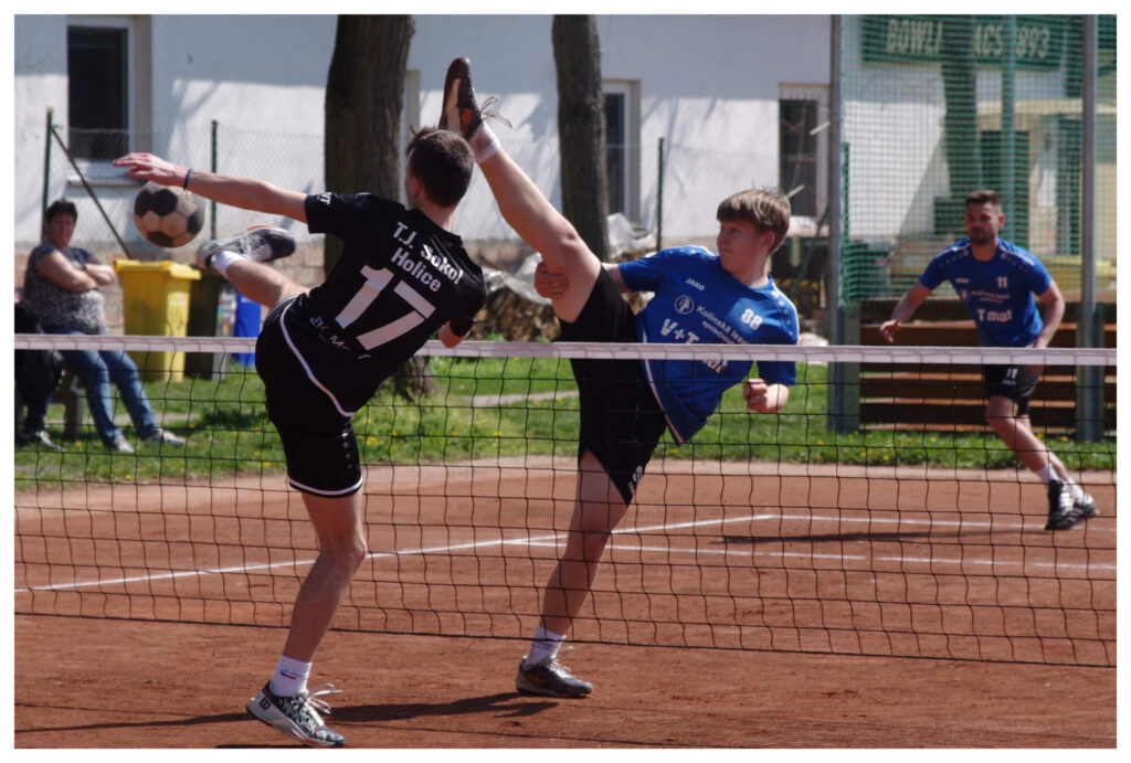 Ke svému prvnímu utkání na domácí půdě se Holice postavily oddílu z Českého Brodu. Souboj odpovídal tabulkovému postavení a holičtí měli průběh celého utkání pevně ve svých rukou. Do první dvojice za domácí Pohl – Ferebauer, za hosty Sýkora – Červenka. Holickým se od začátku dařilo lépe. Několik chyb na útoku dokázali domácí borci zužitkovat. Přesnou a precizní hrou připsali holičtí první dílčí bod v utkání. 1:0. Ve druhé dvojici se domácí Fries, Šimeček a Hoffman na hřišti z počátku trápili. Stejně na tom byla i sestava hostujícího celku. Mladý Bálek vytvořil několik nevynucených chyb a Vedralovi se na útoku také nedařilo tolik, jak tomu bývá zvykem. V obou koncovkách se domácím podařilo chladnokrevně zakončit, a tak byl stav po úvodních dvojicích 2:0. Ve trojicích přejeli holičtí mladíci nejprve trojici vedenou Cibulkou, kterého doplnil Baloun, Sýkora, Červenka a Jedlička. Po dvou jednoznačných setech 10:5 a 10:8 připsala domácí pětice už třetí bod v řadě. Na hřišti se objevil Novotný, Pohl, Šimeček, Teplý a Vojtíšek. 3:0 Podobným stylem si následně poradila Friesova sestava s Vedralovou. J. Bálek se nemohl srovnat s ostrým smečovaným servisem, z čehož pramenilo velké množství chyb v mezihře. Za to domácí borce zdobila velmi dobrá hra v obraně a mezihře. K tomu vysoký Ferebauerův blok a Friesova dobře zvládnutá technická hra zajistila domácím pohodlným náskok. 4:0 Ve střední pasáži se bojovalo. Nejvyrovnanější zápasy dne si vyžádaly rozhodující třetí set. V prvním z nich se ve vložené dvojici o smazání kanárového stavu postaral Cibulka s Balounem a střídajícím Jedličkou. Po vyrovnaných setech 10:6, 7:10 se šlo do třetího setu. Zde si domácí vytvořili náskok 8:6, který ale následně nedokázali udržet. Vlastními chybami se připravili o dobře rozehranou třetí sadu a dovolili tak hostům připsat první dílčí bod utkání. 1:4. Do hry jednotlivců tentokrát za domácí nenastoupil Pohl, který přenechal nelehký úkol svému týmovému parťáku Friesovi. V úvodní sadě vytvářel Fries velké množství nevynucených chyb a proti zkušenému Sýkorovi dokázal urval pouhé 4 body. V setu druhém se karta obrátila. Fries svou hru zklidnil a Sýkora byl nucen více riskovat. Po setu 10:6 se šlo do třetí zkrácené sady, ve které domácí Fries využil několika chyb hostujícího hráče a ve své singlové premiéře se před zraky domácích příznivců postaral o navýšení stavu na 5:1. V posledním duelu dne se jednalo o jednoznačnou záležitost v podání domácí trojice. Hostující trio v podobě – Vedral, J. Bálek a mladičký Blažek nemělo proti rozjetému holickému válci žádnou šanci. Po setech 10:5 a 10:6 se mohla domácí trojice Pohl, Teplý a Novotný radovat z dobře odvedené hry. 6:1. Holice se aktuálně dělí o první místo s týmem Prostějova. Nadcházející kolo prověří holické mladíky, kteří se budou pokoušet sesadit z piedestalu favorizovaný moravský klub.