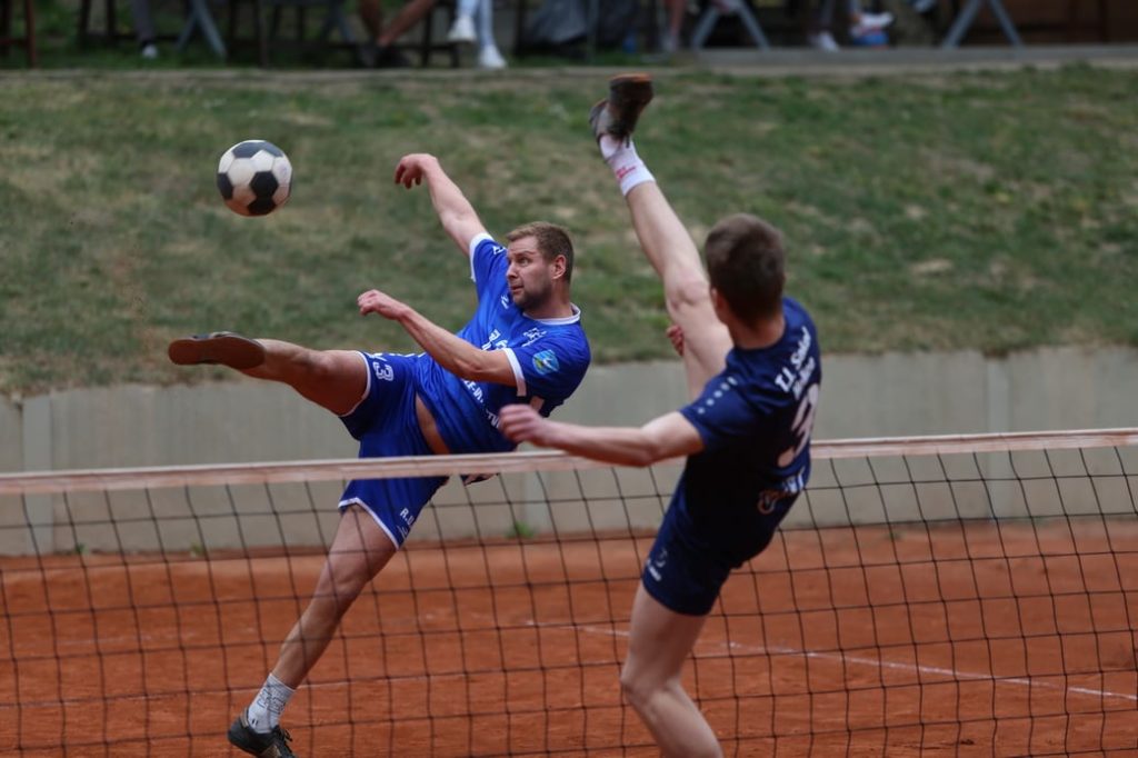 Veselý s Vojtíškem začali svůj zápas proti Bubniakovi s Pelikánem rozpačitě a bylo vidět, že přemíra snahy udělala své a plodila pro ně určitě nečekané chyby. Když nedokázal pomoc ani střídající Kubový, ujali se domácí vedení. Z toho se poučili Fries s Šimečkem, a přestože museli proti Svobodovi, Malcovi a naskočivšímu Havránkovi bojovat na tři sety, ten závěrečný se stal jejich kořistí. Oba bývalé reprezentanty ve trojce doplnil Sušil a znovu se museli Veselý s Čižinským, Kubovým a alternujícími Ferebauerem a Kotyzou před nimi sklonit. Šimeček s Friesem a Vojtíškem však měli nabito ostrými a chybující Svobodova trojka s Příhodou, Malcem a střídajícími Havránkem a Nevrlým neměla nárok. V nepárové části se zdánlivě lámal chleba. Nejprve Čižinský s Ferebauerem a naskočivším Kotyzou zlomili posledním možným míčem Příhodu, Nevrlého a Dlabku staršího a poté v singlu specialista Veselý vyučil „svátečního“ singlistu Pelikána v úvodní sadě 10:4. Zdálo se, že hosté půjdou do trháku, jenže Pelikán prokázal to, co jeho hru vždy zdobilo. Přehled, rozum, klid a skvělou kopací techniku. Střídal různé způsoby podání a znemožnil Veselému hrát jeho hru. V rozhodujícím dějství přidal ostrý a umístěný smečovaný servis a povolil hostujícímu hráči pouze dva míče. V následujících trojicích hrál hlavní roli Bubniak, když jeho obranné postavení ve hřišti prakticky odmazalo hostům technické míče. Přesto se Vojtíšek a spol. dostali do zkrácené sady, jenže Ferrari už mířilo nezadržitelně do cíle. Svobodova ekipa poté vyprášila tu Veselého a Bubniak s Pelikánem korunovali proti Friesovi s Šimečkem dílo svým čtvrtým, respektive pátým bodem v utkání, čemuž téměř 70 diváků nadšeně aplaudovalo.