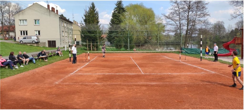 Utkání soupeřů, jejichž hřiště jsou od sebe vzdálená 8 km, mělo jednoznačného favorita v hostujícím týmu. Krásné počasí přilákalo na Habeš asi 80 diváků. Domácím se v týdnu zranil Čejka, hosté komplet. Nejprve Slavíček s Hokrem povolili T. Votavovi s Žilákem a střídajícím Zemenem pouze 9 míčů. Stejně dopadli Vlas s Hrubým a střídajícím Smrčkou proti R. Tomanovi a L. Votavovi. Domácí trojice Mošovský, T. Votava a P. Votava sice kladli odpor, ale Vachulka se Slavíčkem a Hokrem opět zvítězili 2:0. Ve druhé trojici dokázali domácí Vlas, Žilák a Hrubý sice získat set, ale na to na L. Votavu, Švancara a R. Tomana nestačilo. Svou převahu hosté potvrdili i ve vložené dvojici, když Kříž s Havlíkem přehráli Mošovského s K. Tomanem. Soubor singlistů se nesl ve znamení mládí, když nastoupili T. Votava proti Ježkovi. Hostující hráč vyhrál úvodní set, ale pak domácí borec zabojoval a dokázal zápas otočit a odvrátil hrozícího kanára. První odvetná trojice po boji opět vyzněla pro hosty a byl konec zápasu.