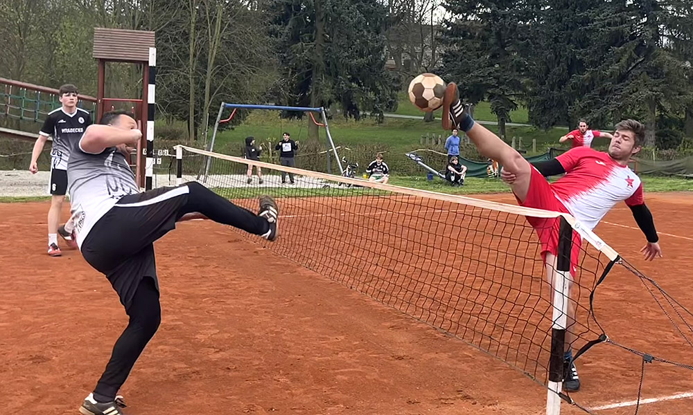 U béček je vždy klíčové, zda se k utkání dostaví fluktuanti do A družstva. U Karlových Varů většinou ven Hokr ani Tolar nevyjíždí, a tak to musí zvládnout jiní. Nestává se ale často, aby hosté dorazili v deseti a navíc s členem nohejbalové Síně slávy v sestavě. V Praze byl k vidění zajímavý střet, ve kterém jen dva zápasy byly rozhodnuty už druhým setem. Jako první se prosadila domácí dvojka Strejček, Kanda, která posledním možným balonem zdolala Pecinu s P. Gregorem. Za hosty naopak uspěla dvojka T. Gregor a veterán Bláha, kteří zkrácený set získala proti Macurkovi a V. Kalousovi. I trojky dopadly bodovou dělbou. Kanda, Strejček a Kopáček podlehli ve třísetové řeži Pecinovi s P. Gregorem a Zrzaveckým, poté však Macurek, V. Kalous, Katz a alternující Suchý o míč třetího setu byli lepší Valeho, T. Gregora, Nozara a Sobotky. Vyjasnění, kdo má navrch, nepřišlo ani v nepárové pasáži. Ve třetí dvojce Suchý a Katz udolali (opět ve třetím setu) Sobotku, Nozara a naskočivšího Valeho. V souboji singlistů V. Kalous odešel poražen posledním možným míčem od T. Gregora. Dost klíčové bylo proto domácí vítězství trojice Kandy, Maříka a Kopáčka nad Bláhou, T. Gregorem, Nozarem a střídajícím Valem. Hosté ale znovu rovnali skóre utkání výhrou Peciny, Tothem, Zrzeveckým a alternujícím P. Gregorem. Vše se tak rozhodovalo až v odvetných deblech. První byl zároveň prvním jednoznačným zápasem střetnutí. Kanda a Kopáček si poradili s výkonem Bláhy a T. Gregora. O tom, že hosté odjedou s prázdnou, rozhodli Macurek s V. Kalousem, kteří ve třetím setu pokořili Pecinu a P. Gregora.