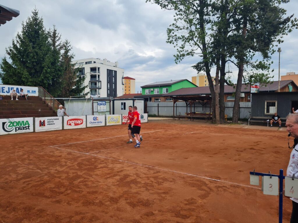Napínavá bitva jako řemen od samého začátku byla k vidění v přerovském areálu. Lépe začal ,,Postr,, a po úvodních dvojicích šel do vedení 2:0. Jenže co chybělo, aby tomu bylo naopak? Nejprve Bucher s Pobuckým přetlačili v těsných koncovkách dvakrát 10:9 domácí opory Miklíka s Dreiseitlem. Srovnat za přerovské toužili Bergmann a Randýsek proti Strašilovi s Hanákem. Výsledek? 10:7, 9:10 a 9:10. V úvodu zápasu tedy napínavé koncovky patřily hostujícím barvám. Domácí kontrovali zásluhou vyhrané trojice sestavy Dreiseitl, Randýsek, Zvoníček. Jenže zásadně se proti vyrovnání stavu postavili Hanák, Strašil a Kolář, kteří hladkou výhrou vrátili Postřelmovu dvoubodové vedení. Poté se však nad areálem v Přerově přehnala totální průtrž mračen a prostřední pasáž hraná už v hale patřila modrožlutým barvám. Nejprve ve ,,vložence,, uspěli Chomoucký s Lakomým a v singlu přerovský Václavek udolal Pobuckého. Stav 3:3 a začínalo se v podstatě znovu. Divoký průběh měl duel prvních odvetných trojic. Přerov v sestavě Dreiseitl, Zvoníček, Randýsek získal 1. set hladce 10:1, aby pak neproměnil mečboly a nakonec Hanák, Kolář a Strašil vývoj celého utkání otočili. Postřelmov tedy znovu vedl a minimálně bod v utkání měl na dosah. Jenže domácí soubor se nechtěl vzdát. Sestava nezdolného bojovníka Miklíka s Lakomým a Bergmannem nejprve svedla se soupeřem velmi vyrovnanou bitvu (10:9, 9:10), ale ve 3. setu mu už nepovolila ani jeden bod-4:4! Na koni byli domácí a Miklík s Dreiseitlem svým soupeřům (Strašil, Hanák) v 1. setu pořádně naložili poměrem 10:4. Druhý set dospěl znovu do stavu 9:9, po posledním míči se ale opět radovali přerovští. Rozhodující dvojka přinesla další velkou bitvu. První set získali jasně hostující Bucher s Pomuckým, stejnou mincí jim ale oplatili ve druhé sadě Bergmann s Randýskem a střídajícím Václavkem. Dramatický souboj se nemohl rozhodnout asi jinak než za devítek v tie-breaku. Zde se potvrdilo, že oproti samotnému úvodu lépe zvládal vyrovnané koncovky setů v druhé části utkání Přerov, jenž doslova vydřel v moravském derby velmi cenné vítězství!