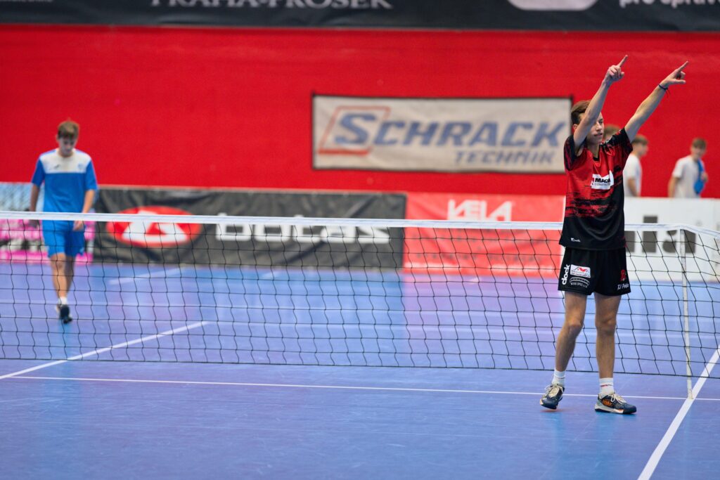 Finálový duel začal hned od začátku poměrně zostra, nastoupily proti sobě totiž elitní debly obou týmů. Pekelníci Čižinský s Friesem sice získali v úplném úvodu první 2 body, jenže poté postupně začali ztrácet půdu pod nohama. Kolouch se Svobodou tradičně předváděli strojově přesnou hru s vynikající mezihrou a díky ní neměli problém bodovat, naopak Pekelníci se na příjmu trápili, což vedlo i k následným chybám na útoku. První set získaly Modřice bez větších problémů poměrem 10:6, v tom druhém se hra vyrovnala a velká bitva dospěla až do napínavé koncovky. Za stavu 9:9 nejprve výborně zasáhl proti Čižinskému v obraně Svoboda a další útok z horší pozice už poslal Čižinský do autu, Modřice se tak dostaly do vedení 1:0. Do druhé dvojice Peklo poslalo do boje osvědčenou sestavu Ferebauer, Kotyza, naopak Modřice možná lehce překvapily nasazením mladičkého Jahody ke Slukovi. Ten se však svojí šance chopil velmi dobře a do poloviny prvního setu se držely Modřice ve vedení. Za stavu 5:5 přišel první omyl Sluky na útoku, od té doby se dařilo oběma týmům bodovat až do devítek. Za tohoto stavu Modřice zkusily nasadit do hry zkušeného Jurku, Kotyza ale prokázal chladnou hlavu a útok po svém vynikajícím příjmu proměnil. To modřické hráče srazilo dolů, naopak Pekelníci se uklidnili a po dominantním výkonu získali druhý set hladce 10:4. Srovnáno 1:1 a do úvodní trojice trenéři obou týmů nenasadili své lídry Friese a Svobodu, jež takticky šetřili do velmi důležitého singlu. Za Peklo začala sestava Koblic, Čižinský, Kotyza a alternoval Ferebauer, za Modřice Kolouch, Sluka, Jurka a střídali v průběhu Dlabka s Jahodou. Východočeši si v první sadě vypracovali nadějné vedení 7:5, jenže na tomto stavu se zasekli. Naopak modřickým hráčům zafungovala obrana bez bloku a dokázali vývoj otočit až na 9:7. Houpačka pokračovala a Peklo po vystřídání Ferebauerem do hry srovnalo na 9:9. Za tohoto stavu však ustál situaci skvělým kraťasem Kolouch a poslal Modřice do vedení. Ve druhém setu došlo ke zlepšení v souhře Pekla, které dokázalo srovnat stav setů. V tie-brejku ale byli už zase přesnější jejich soupeři, kteří se tak dostali do vedení 2:1. Fries versus Svoboda. To byl souboj hlavních lídrů obou týmů v singlu a duel zcela splnil očekávání. Vysoká kvalita a skvělá technika hráčů-radost pohledět. Za delší konec provazu tahal přeci jen o něco málo jistější zástupce Pekla, který po zásluze získal 1. set. V tom druhém Svoboda aktivnější hrou odskočil do vedení na 7:5 a zdálo se, že rozhodne znovu až zkrácená sada. Jenže chyba lávky! Fries zabojoval, trpělivě si připravoval výhodnější pozice pro útok, které dokázal proměňovat, nepříznivý vývoj otočil a i díky závěrečné chybě Svobody na servisu připsal svému týmu druhý bod. To vše probíhalo v té chvíli k velké radosti asi třicítky hlasitých pekelských příznivců. Vzhledem k tomu, že v odvetných deblech se papírově počítalo s výhrami elitních sestav, naprosto klíčovým duelem byla následující odvetná trojice. Modřice nasadily sestavu Kolouch, Svoboda, Jurka a alternoval Sluka, za Peklo šli do boje Fries, Ferebauer, Čižinský a střídali Kotyza a Teplý. Kdo očekával další velkou a vyrovnanou bitvu, musel být trochu zklamán. Elitní sestavě Pekla se příliš nedařilo, Fries na útoku tentokrát nezvykle kazil, naopak Modřice začaly hrát ve velké pohodě. Tahouny týmu Koloucha a Svobodu dobře doplňoval i doposud nepříliš výrazný Jurka, který se rozehrál k velmi dobrému výkonu. Výsledkem toho byla jednoznačná výhra Modřic 10:5. Změnu nepřinesl ani úvod druhé sady a Jihomoravané kráčeli za klíčovým třetím bodem. Až za takřka beznadějného stavu 5:9 se Peklo probudilo, zabojovalo a dokázalo svého soupeře výrazněji znejistět. Uspělo v několika velmi dlouhých výměnách a vyrovnalo až na 9:9. Také poté dokázali Východočeši zachytit útok soupeře, ale nedokázali si znovu ideálně proti obraně bez bloku nahrát, čehož Kolouch na třetí pokus i s trochou štěstí využil. Čižinský se snažil situaci ještě obětavým zákrokem zachránit, ale nepodařilo se a bohužel si ještě o mantinel přivodil nepříjemné zranění lýtka, po kterém zůstal několik minut ležet na palubovce (naštěstí by dle posledních zpráv nemělo jít o dlouhodobější problém). Modřice vedly 3-2 a elitní sestava Kolouch, Svoboda byla proti druhé dvojici Pekla favoritem. V úvodu se proti otřesenému soupeři dokázala prosadit, ale Ferebauer s Kotyzou nechtěli prodat kůži lacino a bojovali o naději statečně. Za stavu 8-7 pro Modřice však v koncovce 1. setu přišly dvě chyby na útoku Pekelníků za sebou, což rozhodlo. Druhý set byl velmi vyrovnaný. Peklo se dostalo v půlce setu do vedení a do stavu 8-8 bylo stále reálně ve hře o obrat. Modřice po oddechovém času ale závěr zvládly s přehledem a naprosto zkušeně. Nejprve Svoboda po chyceném míči v obraně nekompromisně zakončil a při následném útoku Pekla Ferebauer spadl v těžké pozici po odehrání míče do sítě, čímž odšpuntoval modřické oslavy dalšího z mnoha svých dorosteneckých titulů. Vzhledem k soupiskám finálových soupeřů, ambicím obou týmů a jejich mladým výběrům, je vysoce pravděpodobné, že i v příští sezóně může dojít ke stejnému složení Superfinále. ,,Rozhodujících událostí bylo v zápase několik. Špatně jsme odehráli souboj prvních dvojic. Na rozdíl od soupeře jsme měli příjem vzadu a nemohli si pomoct útoky z druhé. Do toho měl soupeř kvalitnější servis. V obou trojicích jsme udělali příliš mnoho chyb v rozehře i na útoku a obecně jsme se moc nedostali 