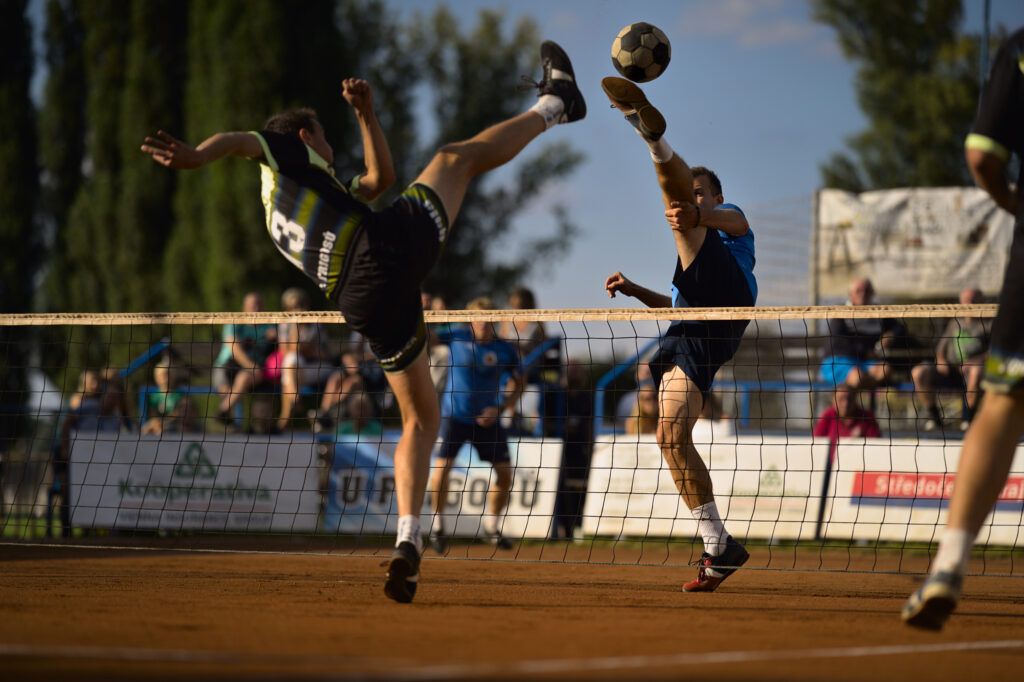 Stejně jako na západě čech, i zde došly čtyři zápasy do třetích setů. Jednalo se tedy také o vyrovnaný zápas, avšak s nižším konečným skórem pro hosty. Ti hořeli především ve hře trojic a to se jim stalo osudným. Kolenský s Flekačem a střídajícím Nesládkem se proti Sehrigovi s Jůzkem nejdříve trochu hledali. Postupnou hrou se však jako již častokrát našli, a ve třetím setu otevřeli tohle čtvrtfinálové utkání vítězně. Na to nenavázali čerstvě stříbrní dvojkaři Spilka s Holasem proti bramborovým bratrům Vítům z uplynulého víkendu, kdy se v modřické hale konal republikový šampionát dvojic. Vicemistři sice brali úvodní set. Ten druhý šel však celkem přesvědčivě za chmelaři. Set rozhodující dospěl až do devítek, kde svou chladnokrevnost prokázal po delší výměně Vít P. a svým typickým kraťasem vyrovnal stav utkání. Trojky však hostům tento den vázly. Matura nejprve uskákal obranu trojice vedenou Vítem O. a sestava jeho bratra poté nestačila v třísetovém klání na Flekačovu ekipu. Nejhezčí utkání dne přinesla hra jednotlivců. Úřadující mistr světa Vít O. proti letošnímu bronzovému Kolenskému. Výsledek setů 10:9, 9:10 a 9:10 hovoří za vše. Zisk první sady Vít Kolenskému usnadnil autovým úderem. V tom druhém si po hezké výměně Vít vynutil třetí sadu patovým úderem. Třetí set byl o nervech a ty si zachoval žatecký singlista. Nejdříve vyrovnal na 9:9 a poté prasátkem na servisu vykolejil Kolenského příjem, který umístil svou patu do těsného autu. Za stavu 3:2 se šlo tedy do odvetných utkání, ale ani tam se žateckým nepodařilo prolomit trojkové prokletí a ve čtyřech setech pohasly jejich naděje na první čtvrtfinálové překvápko.
