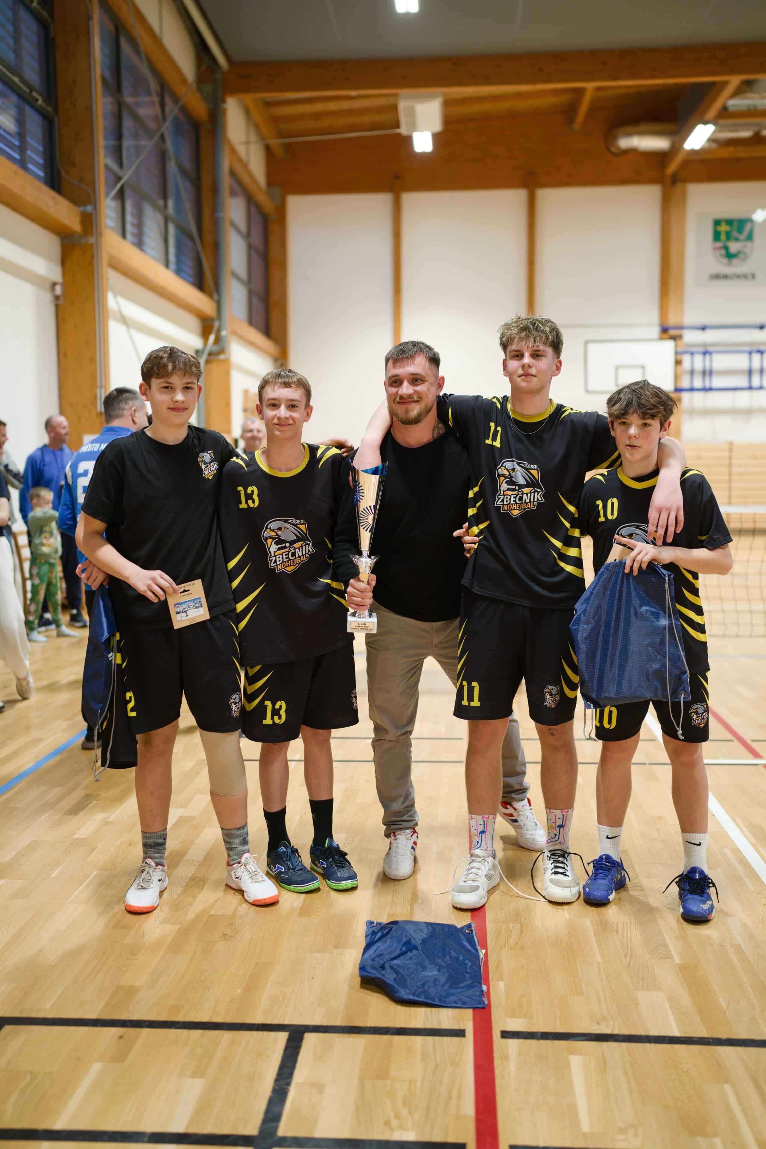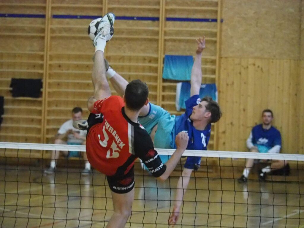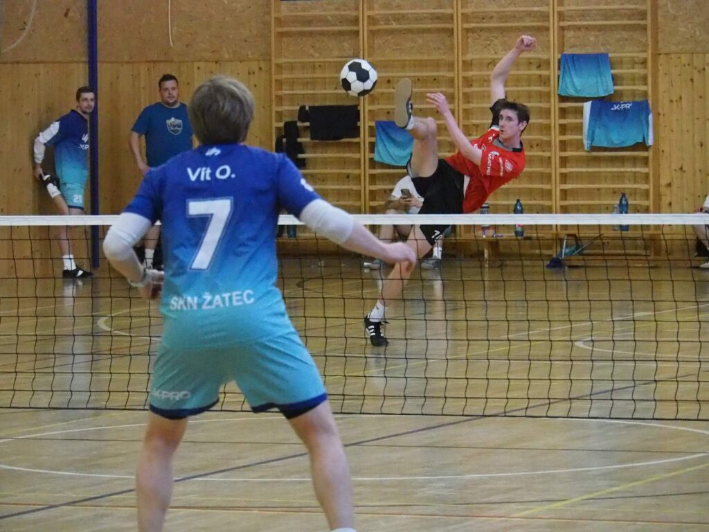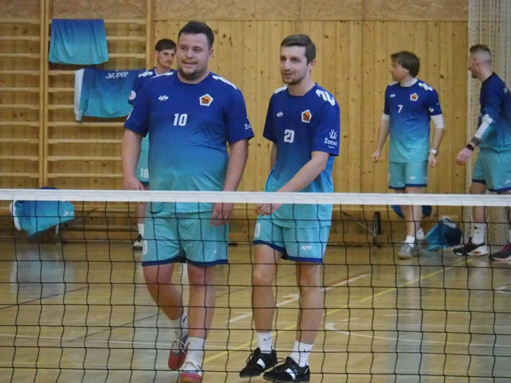 Do prvního zápasu trojic vyrukoval Vsetín s trojlístkem David Dvořák, Jakub Halašta a Kryštof Ptáček. Žatec reprezentovali Vilém Ungermann a Nikolas Truc, kterým dělal na nahrávce servis Jaroslav Kovařík. Pozorný fanoušek nohejbalu ví, že se v tomto případě jednalo o reunion sestavy mistrů dorostenecké ligy z roku 2018. A na třech zmíněných byla dávná souhra znát. Z počátku sice tahali hosté za kratší konec, misky vah se ale v polovině obrátily. Žatec začal Dvořákovi zabíhat střed za blokem, kam domácí smečař z počátku často bodoval. Kdo naopak zůstával stoprocentní, byl Nikolas Truc. V samotném závěru reagovala na prohospodařené vedení domácí lavička střídáním. Halaštu nahradil naskočivší Martin Tomek. Nejmladší z valašského nohejbalového klanu Tomků už prohru odvrátit nedokázal. Set uzavřel Ungermann smečí do rohu kurtu, jež obrana Vsetína nedokázala zpracovat. Po výměně stran zůstal Halašta na lavičce a začínalo se ve stejném složení, jako na konci prvního setu. Více ze hry měl stále Žatec. Proto přišly další změny. Tomka po chvíli pobytu na kurtu vystřídal Martin Zbranek. Ani pět hráčů, kteří se postupně protočili na hřišti, nestačilo na žatecký nápor. Trojice chmelařů pokračovala v efektivní a přesné hře, která je dovedla k vítězství.